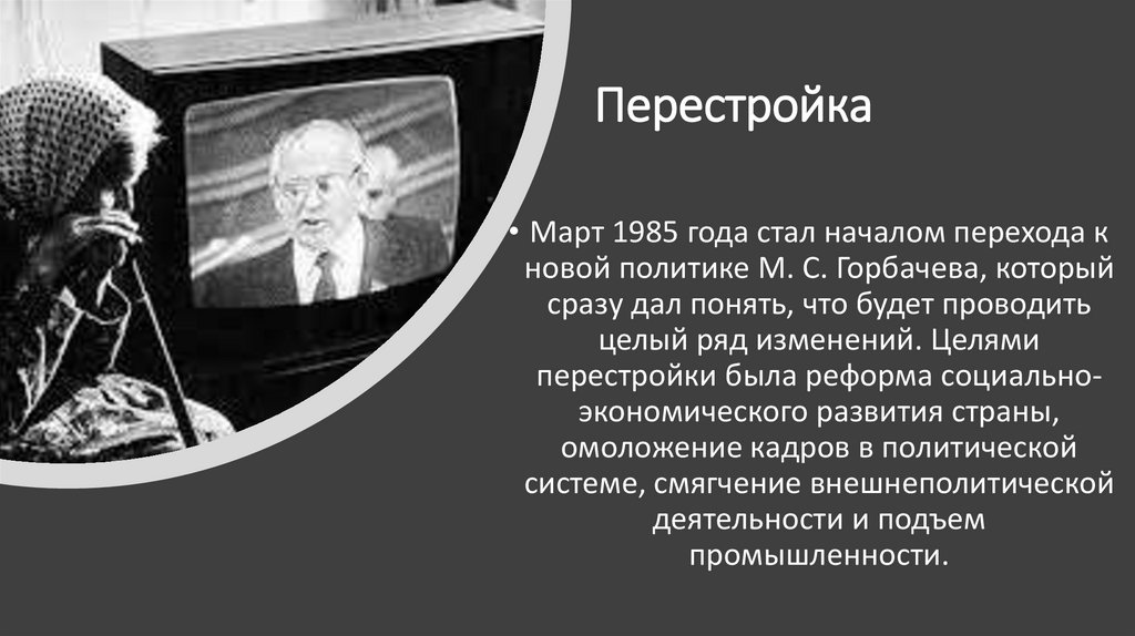 Перестройка• Март 1985 года стал началом перехода к