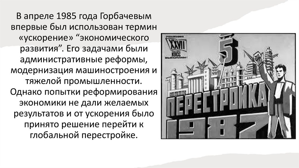 В апреле 1985 года Горбачевымвпервые был использован термин