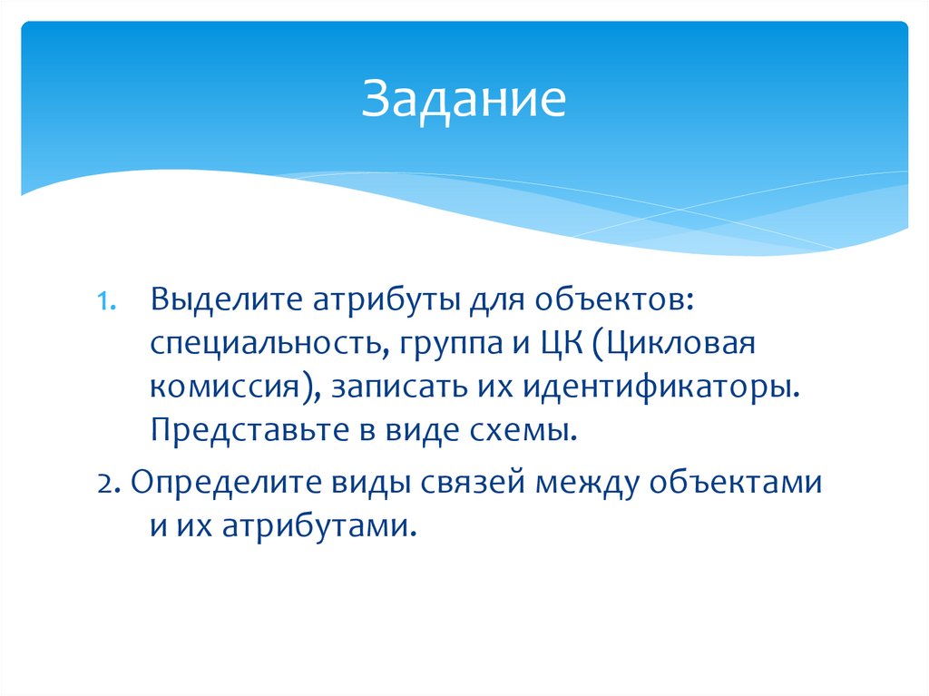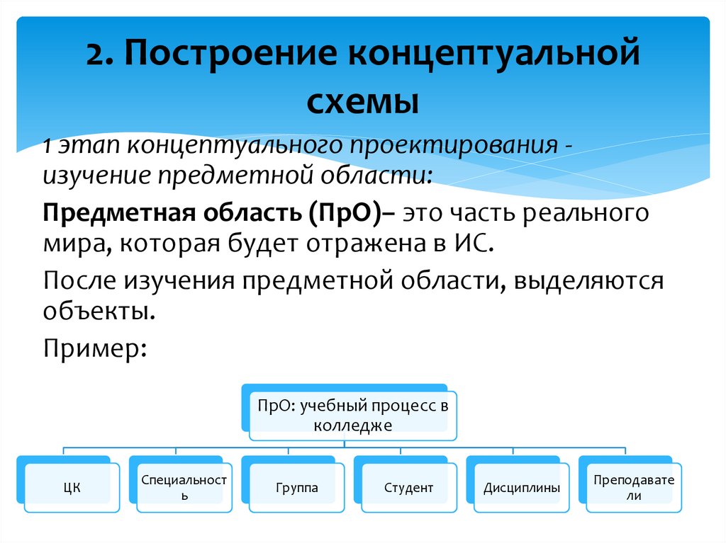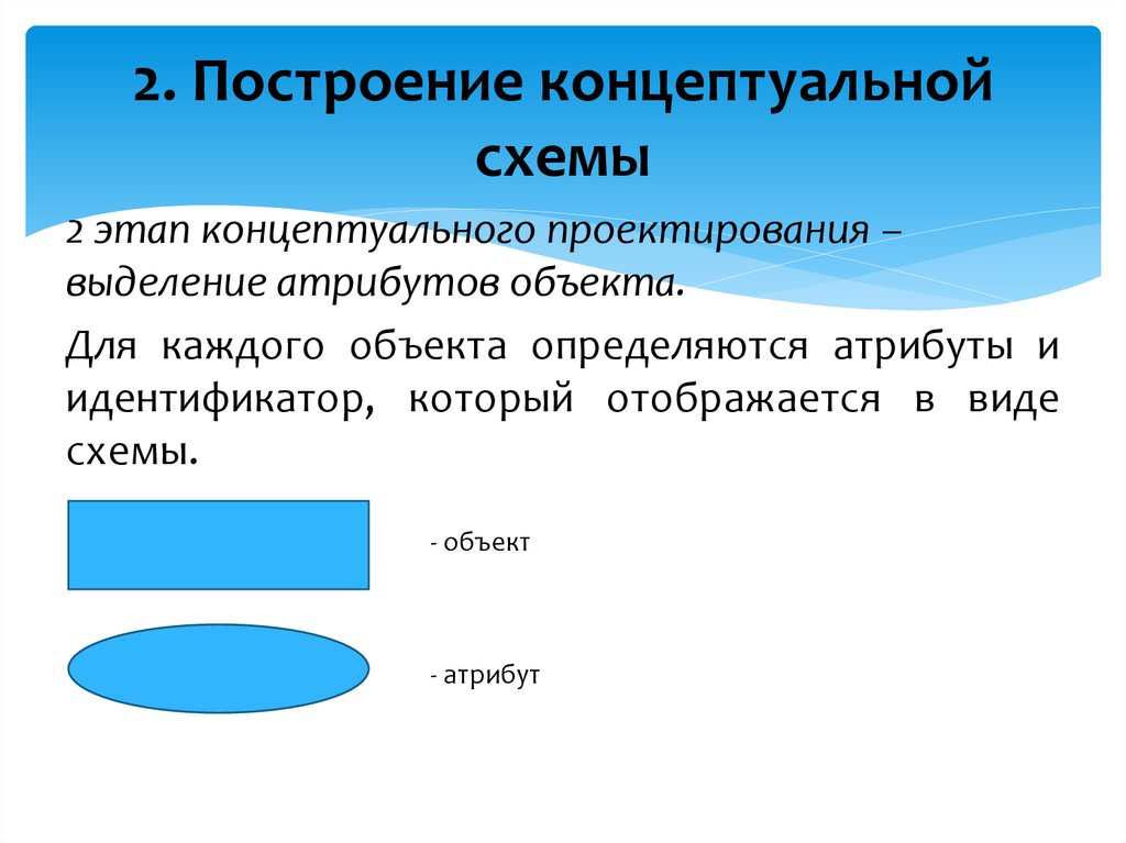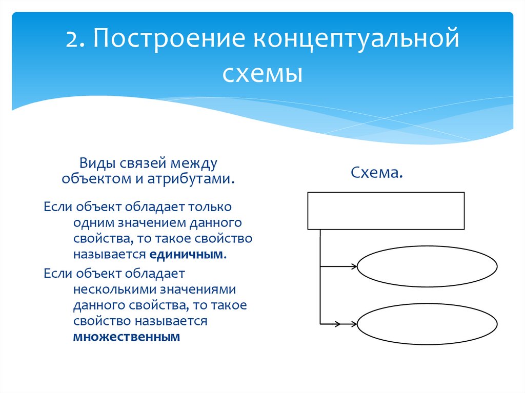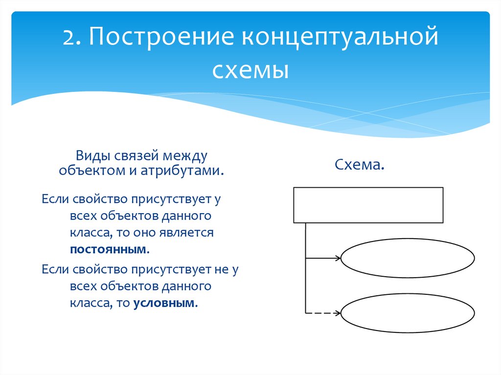 2. Построение концептуальной схемыПример связей между объектом и атрибутами: