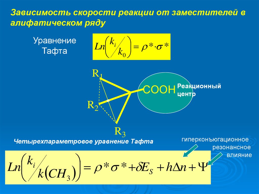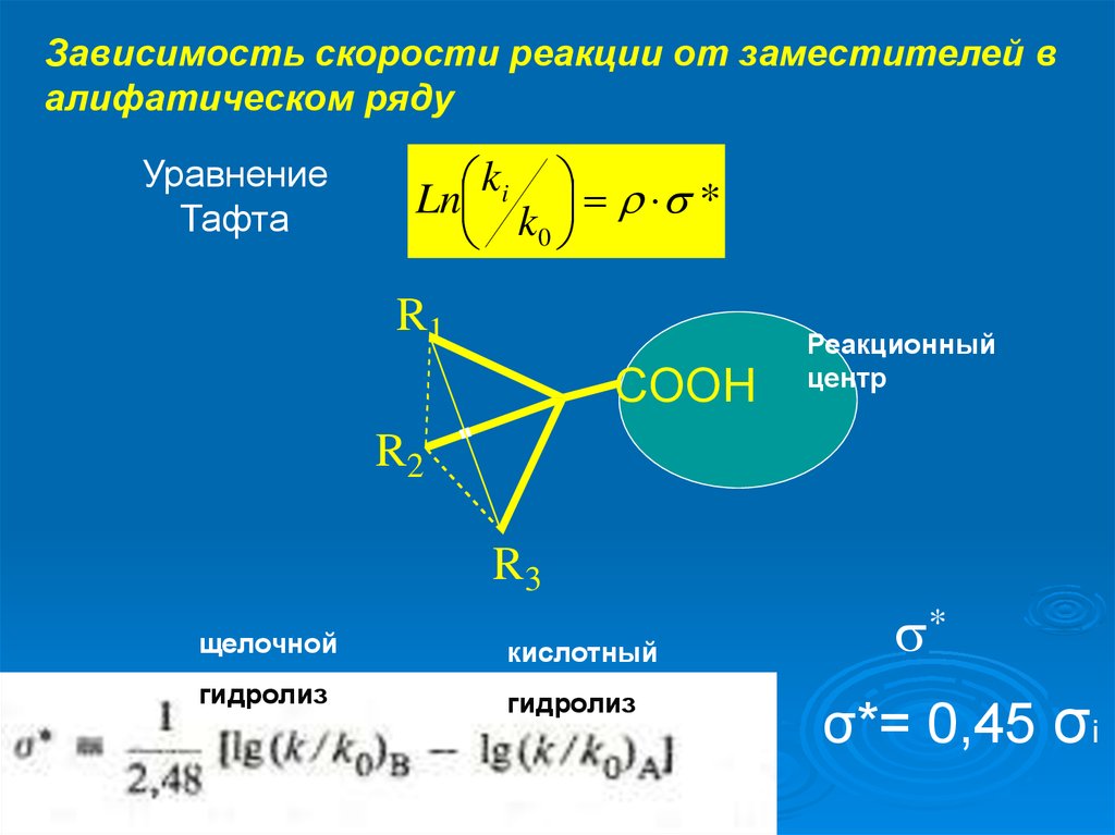 Зависимость скорости реакции от заместителей валифатическом ряду