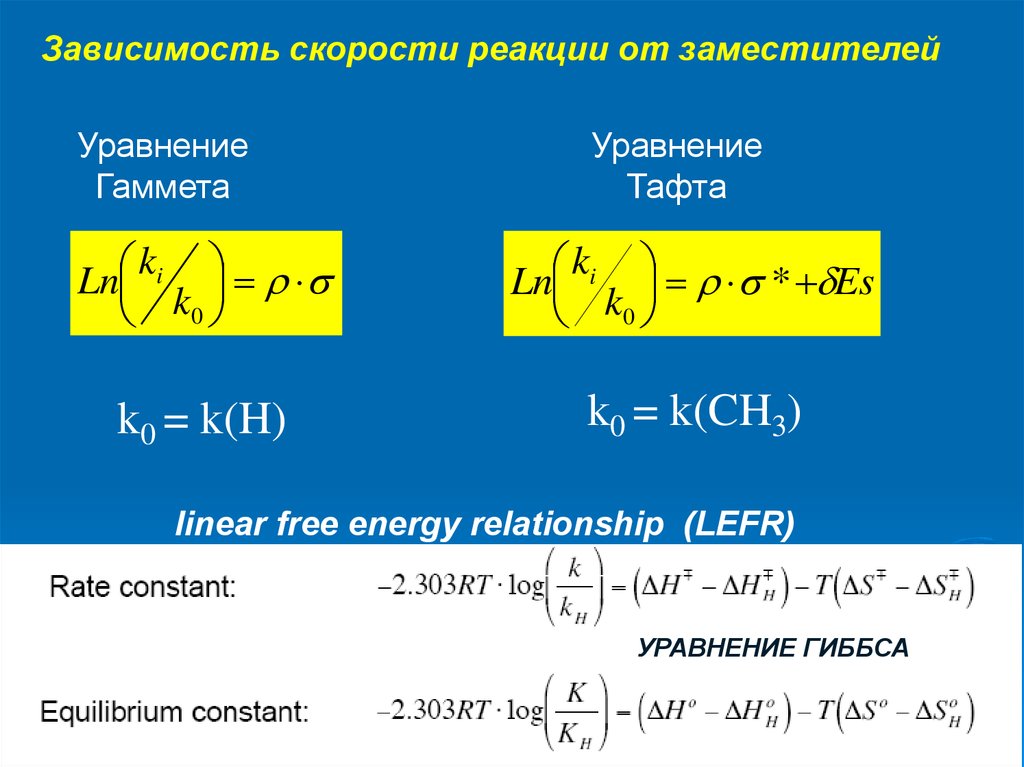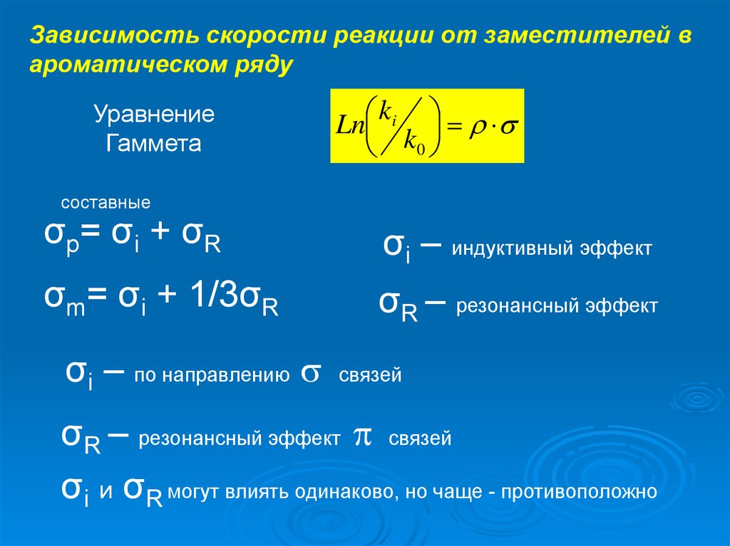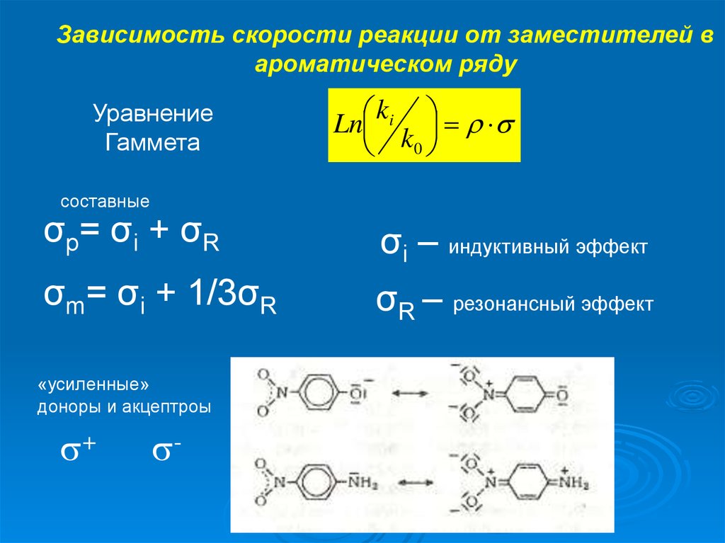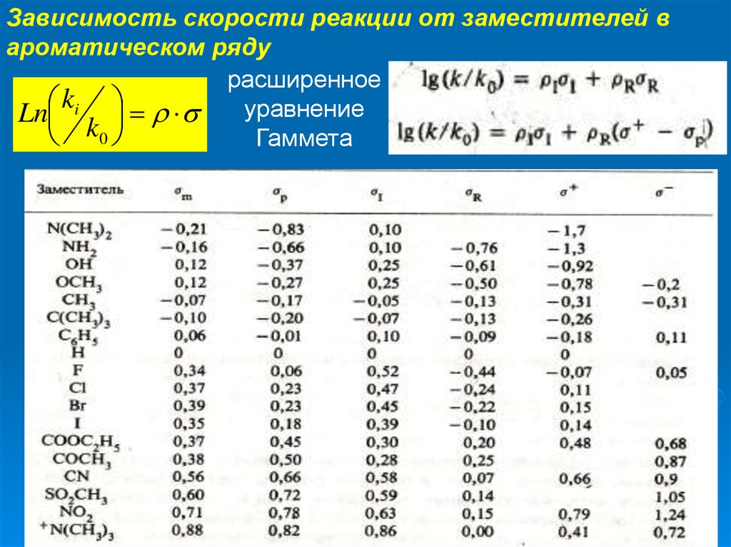 Зависимость скорости реакции от заместителейв ароматическом ряду