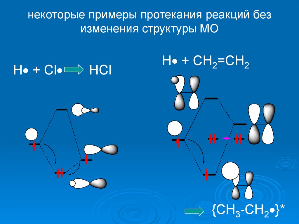 некоторые примеры протекания реакций безизменения структуры МО