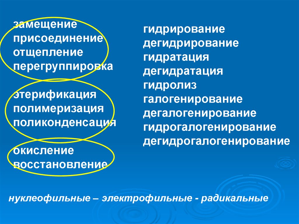 нуклеофильные – электрофильные - радикальные