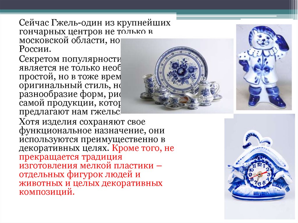 Сейчас Гжель-один из крупнейшихгончарных центров не только в