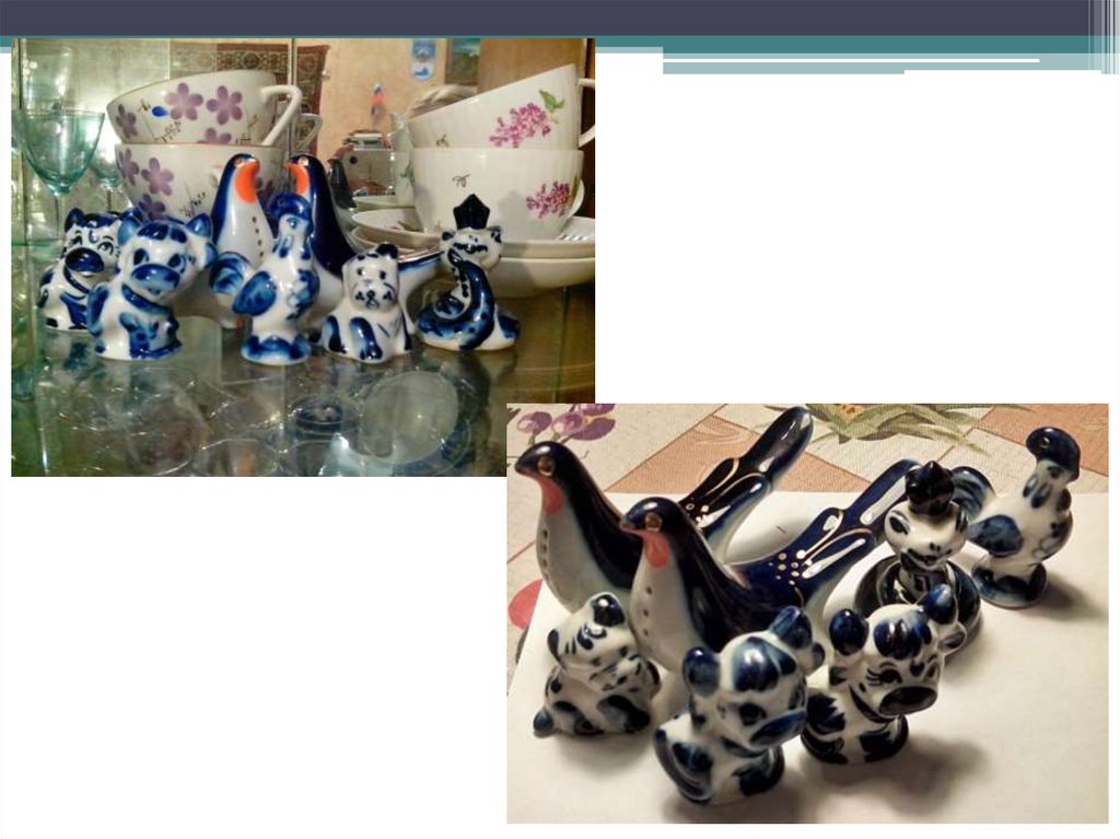 • Какие изделия народных промыслов представлены?- В моей коллекции присутствуют фигурки из гжели.