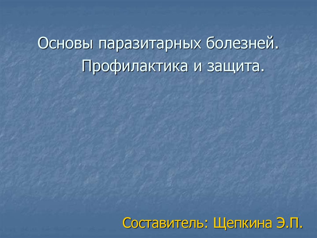 Основы эпидемиологии и профилактики паразитарных заболеваний человека