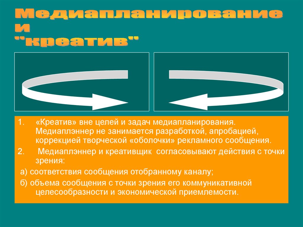 «Креатив» вне целей и задач медиапланирования.Медиаплэннер не занимается разработкой, апробацией,