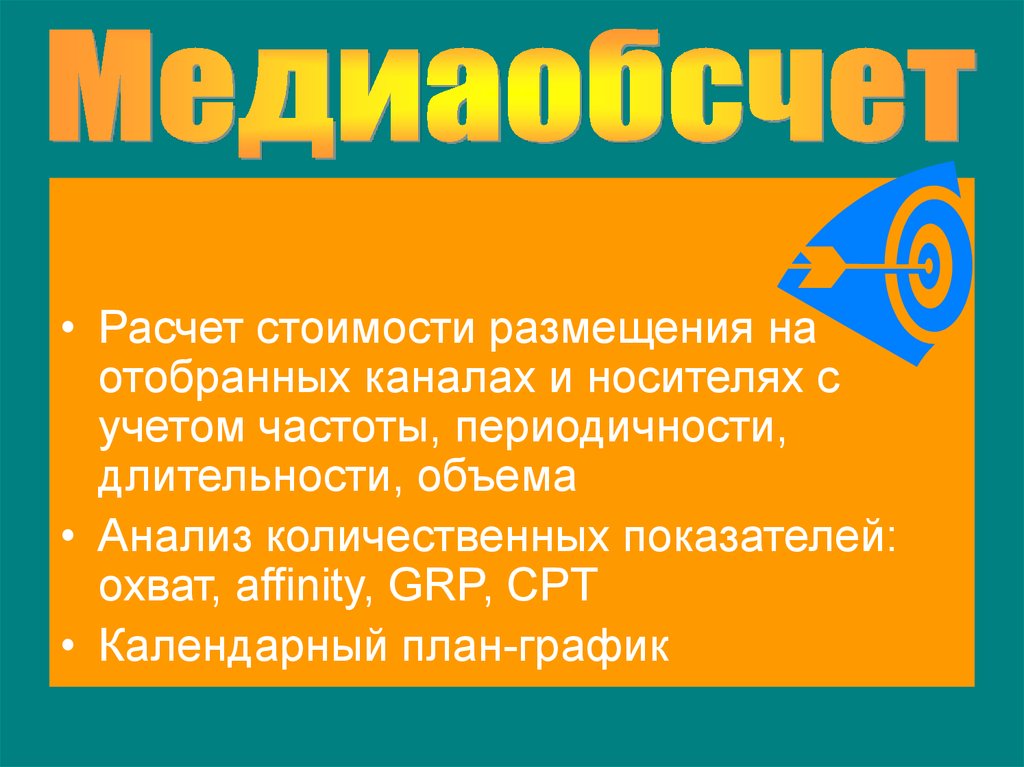 • Расчет стоимости размещения наотобранных каналах и носителях с