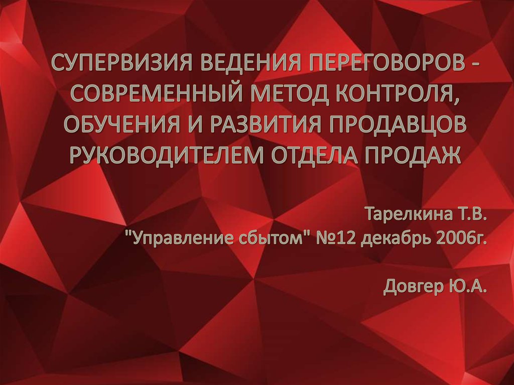 Супервизия ведения переговоров