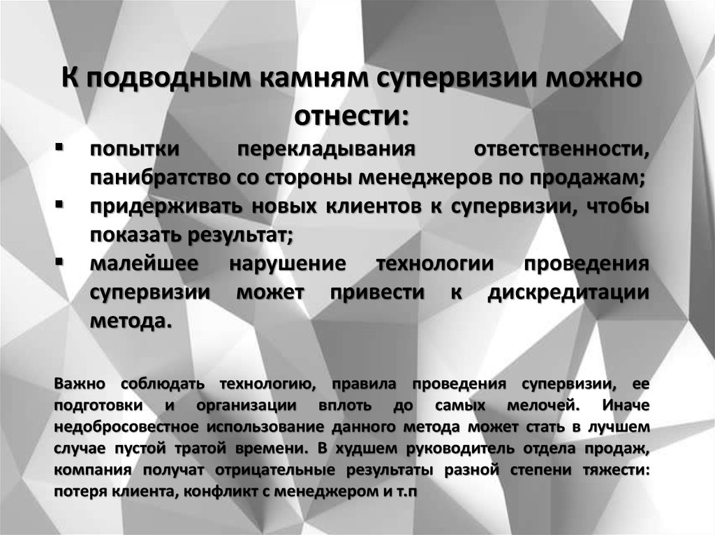 К подводным камням супервизии можноотнести: