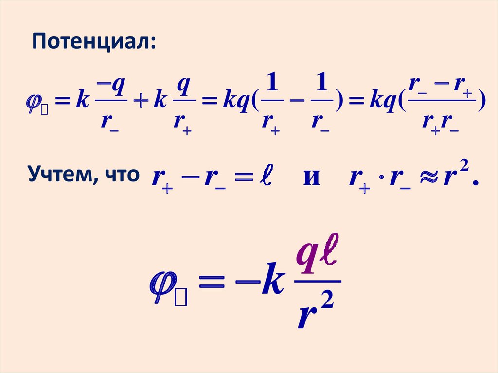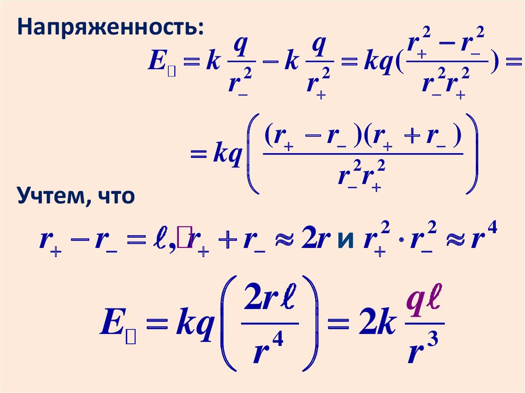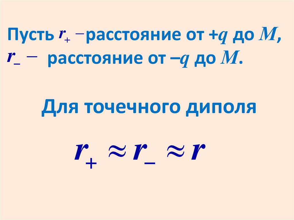 Пусть r расстояние от +q до М,r расстояние от –q до М.