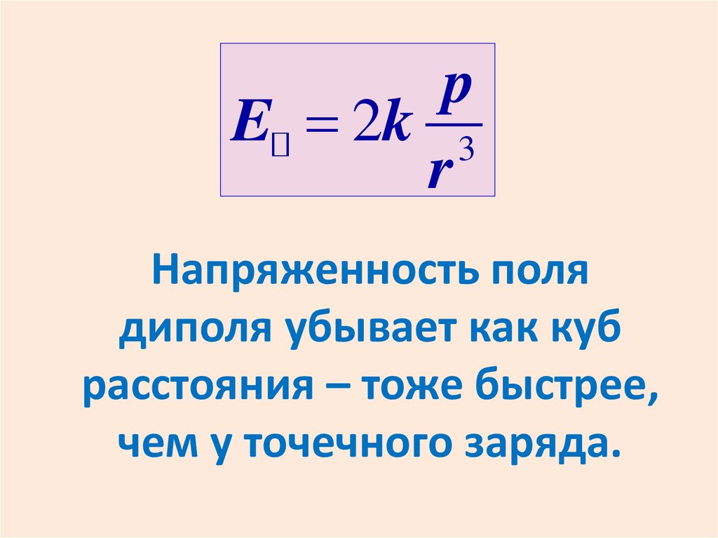 диполя убывает как куб