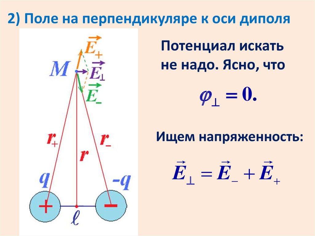 2) Поле на перпендикуляре к оси диполяПотенциал искать