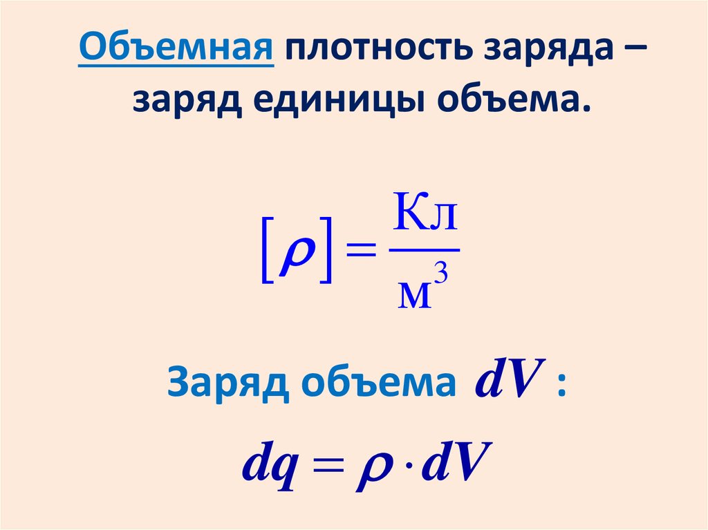 Объемная плотность заряда –заряд единицы объема.