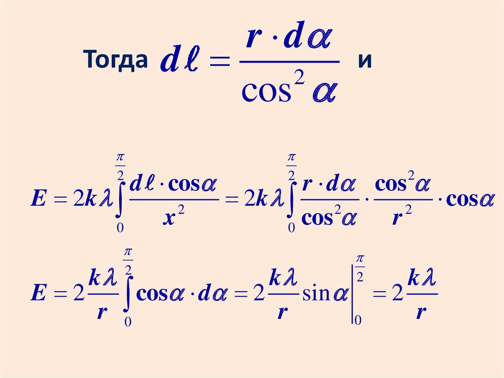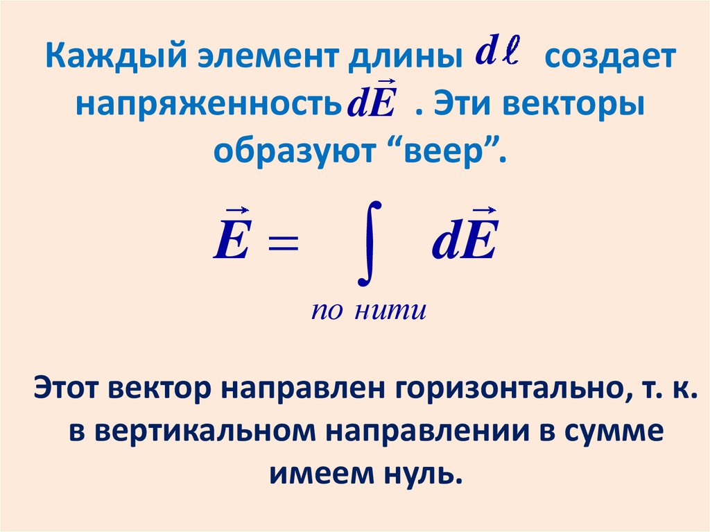Каждый элемент длины d создаетнапряженность dE . Эти векторы