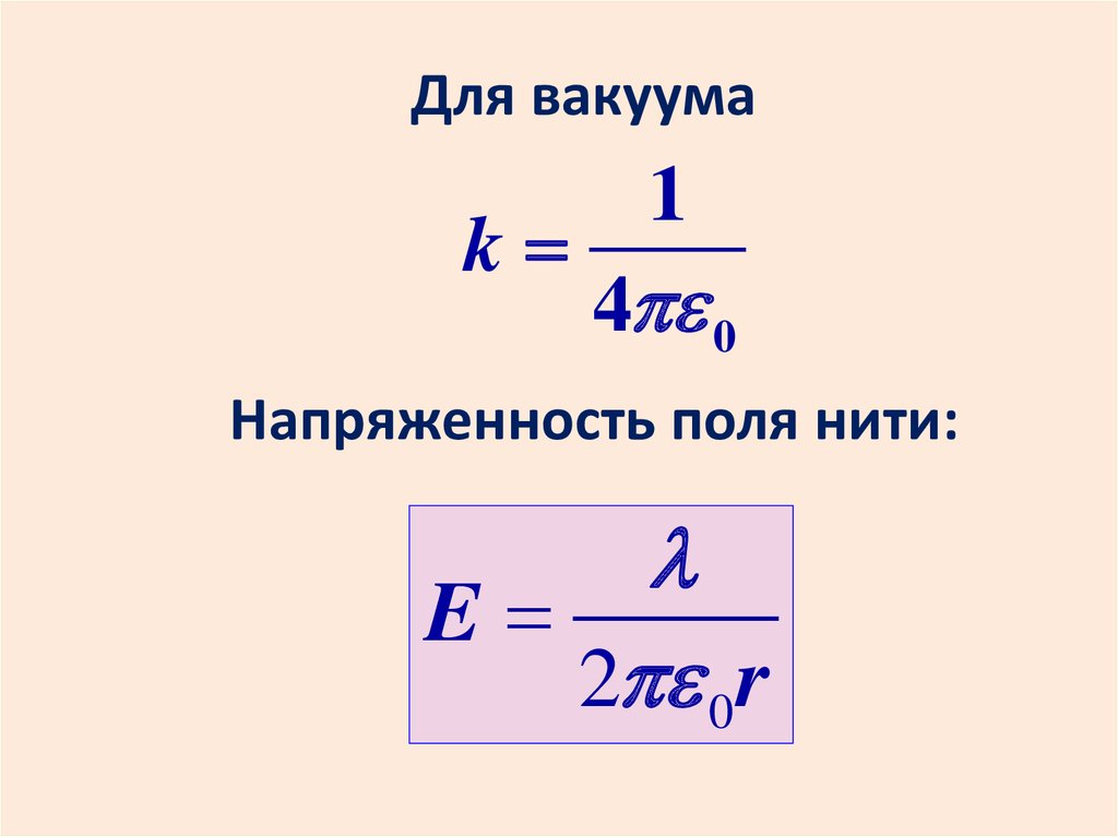 Напряженность поля нити:
