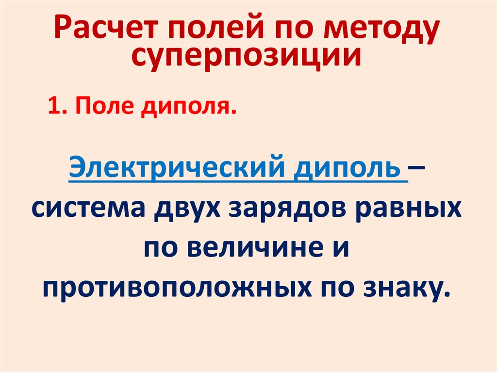 1) Поле на оси диполя:По принципу суперпозиции: