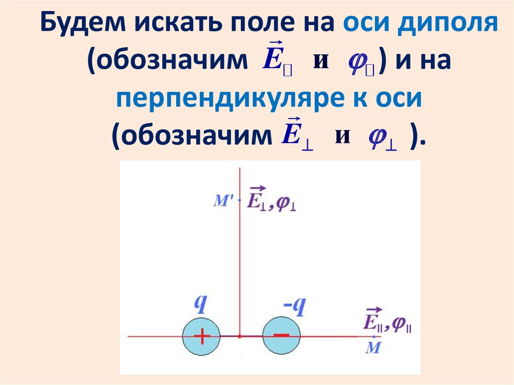 Будем искать поле на оси диполя(обозначим E и ) и на