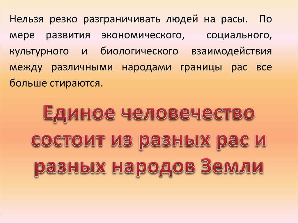 Нельзя резко разграничивать людей на расы. Помере развития экономического,