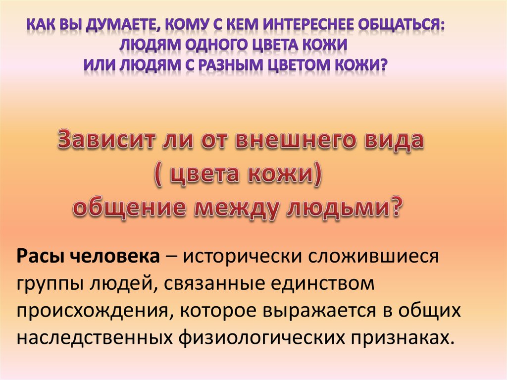 Расы человека – исторически сложившиесягруппы людей, связанные единством