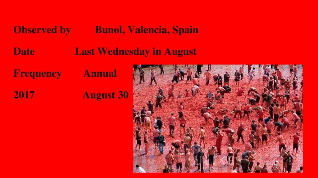 In 2002 La Tomatina of Bunol was declared a Festivity of