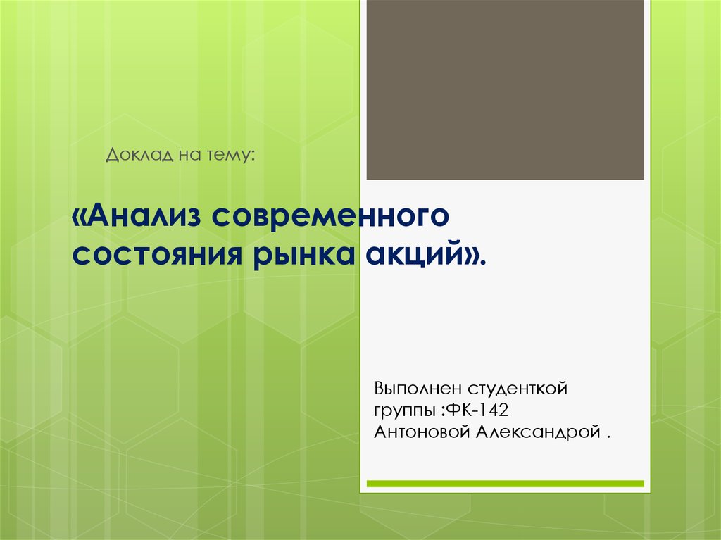 Существенное влияние на современный фондовыйрынок оказывают в последнее время внешние