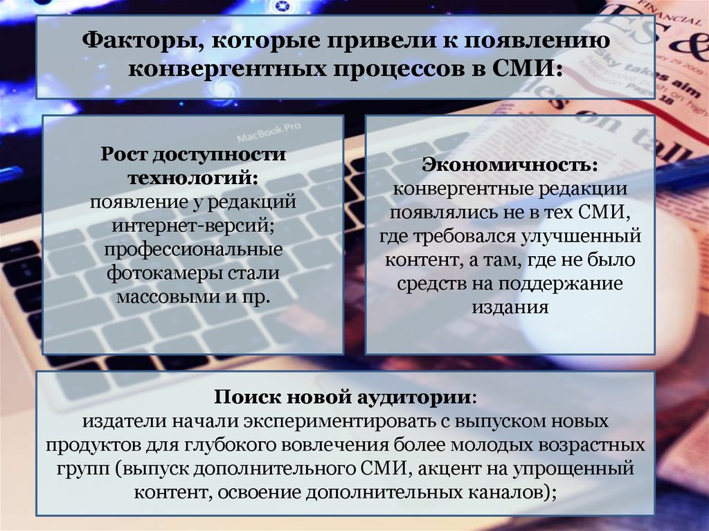Факторы, которые привели к появлениюконвергентных процессов в СМИ: