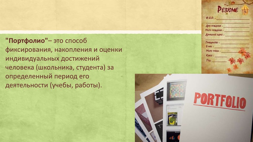 "Портфолио"– это способфиксирования, накопления и оценки