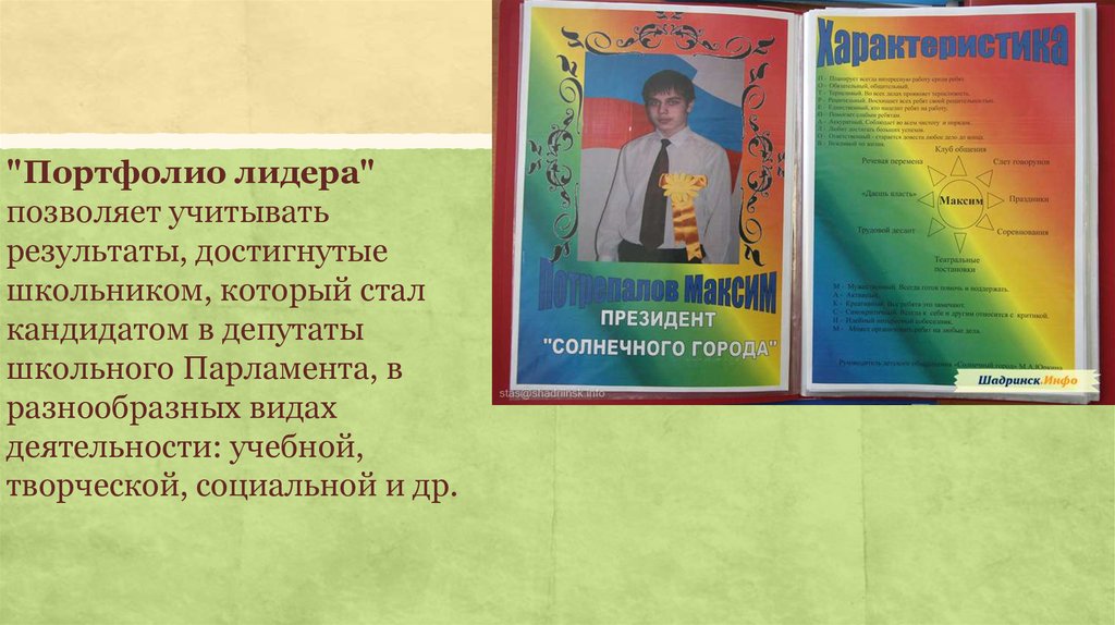 Портфолио лидера ученического самоуправления