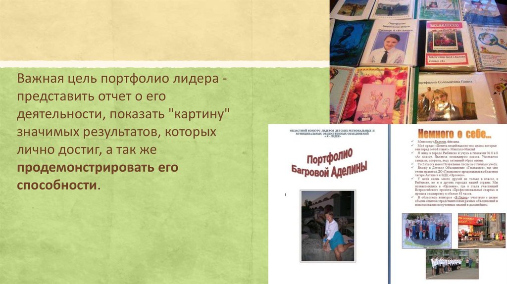 Важная цель портфолио лидера представить отчет о егодеятельности, показать "картину"