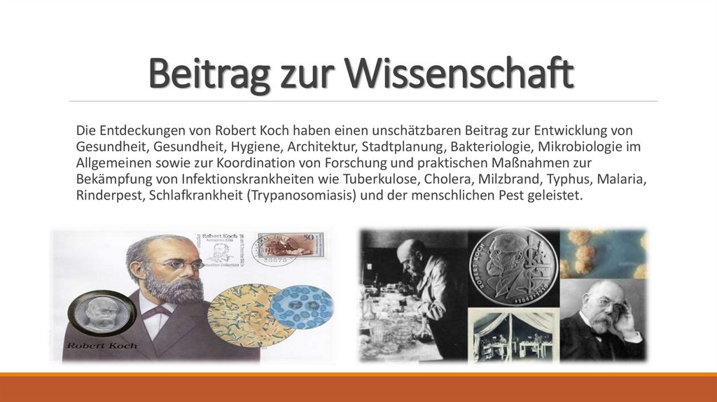 Beitrag zur WissenschaftDie Entdeckungen von Robert Koch haben einen unschätzbaren Beitrag zur Entwicklung von