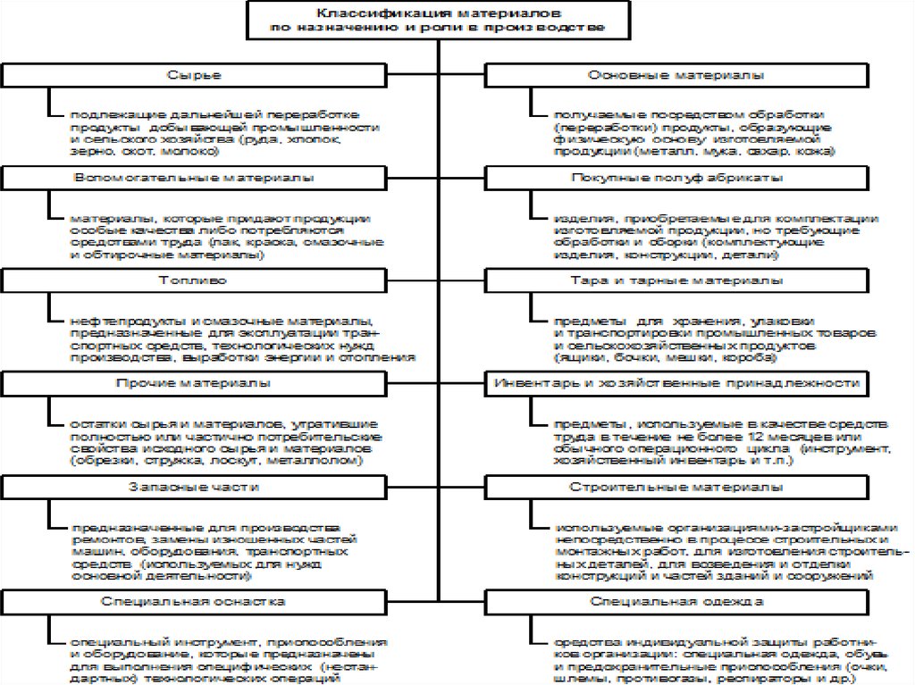 Классификация материально-производственных запасовПо назначению и роли в процессе
