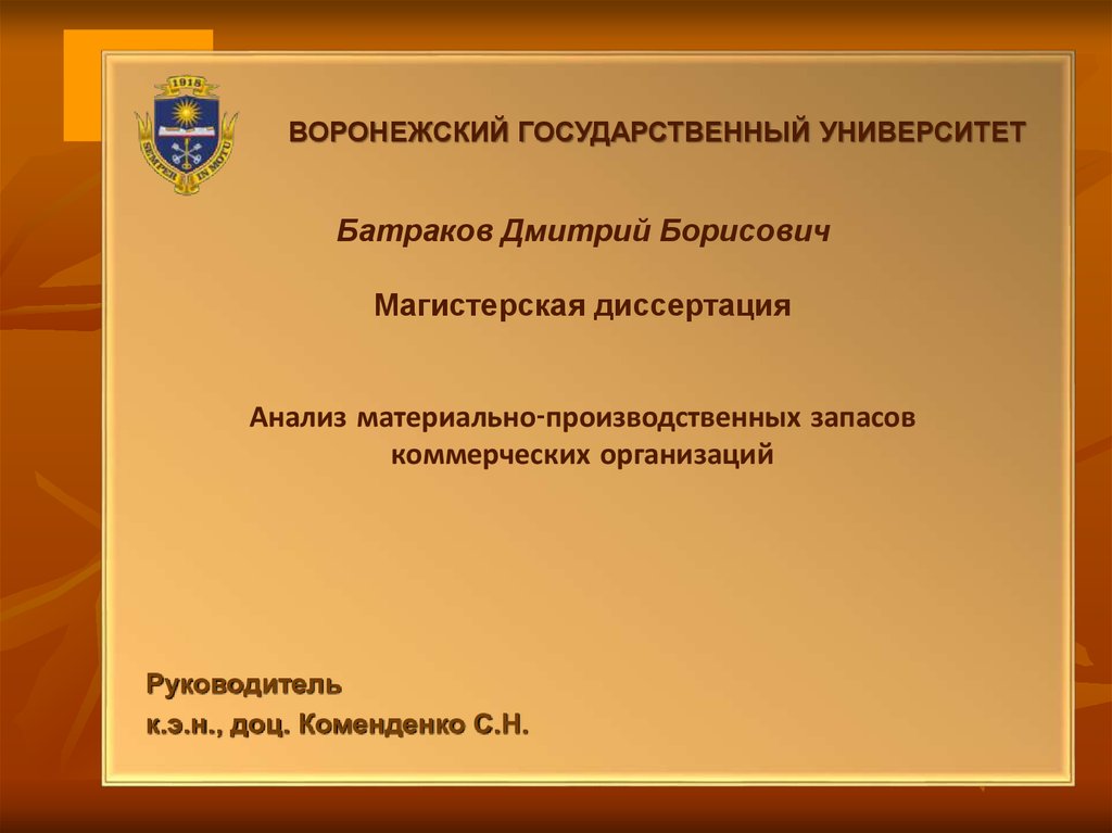 ВОРОНЕЖСКИЙ ГОСУДАРСТВЕННЫЙ УНИВЕРСИТЕТБатраков Дмитрий Борисович