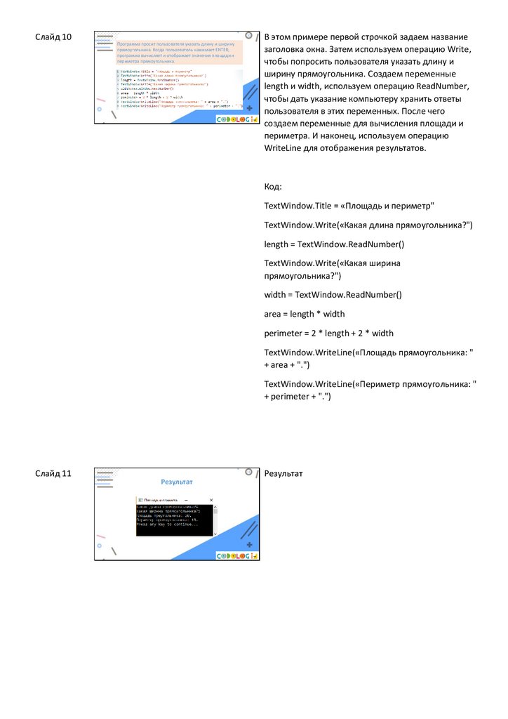 TextWindow.WriteLine(«Привет, " + name + ".")