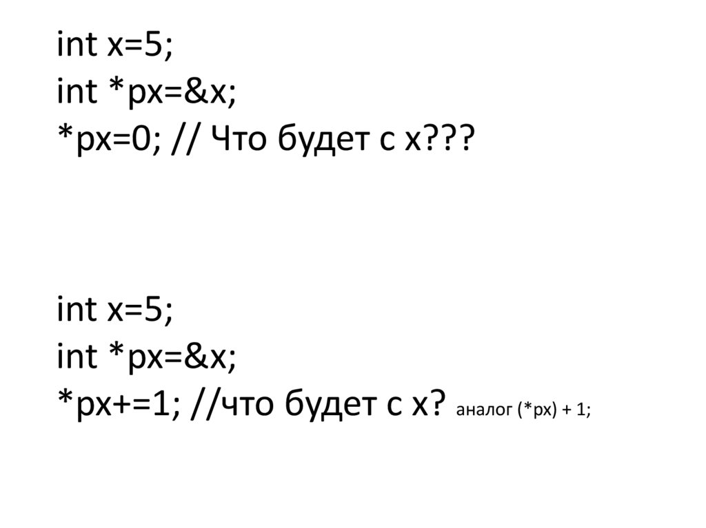 *px+=1; //что будет с х? аналог (*px) + 1;