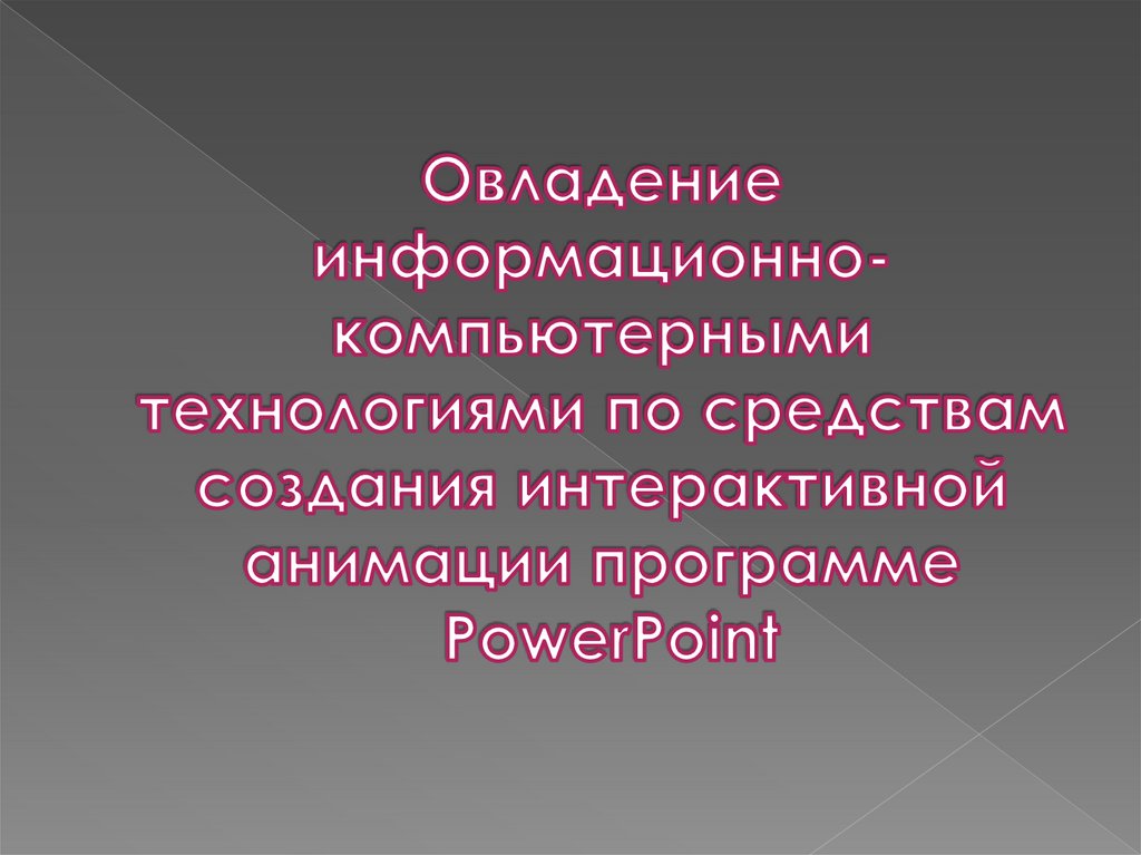 Овладение информационно-компьютерными технологиями по средствам создания интерактивной анимации в программе PowerPоint