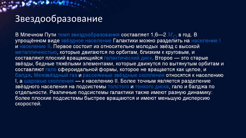 ЗвездообразованиеВ Млечном Пути темп звездообразования составляет 1,6—2 M⊙ в год. В