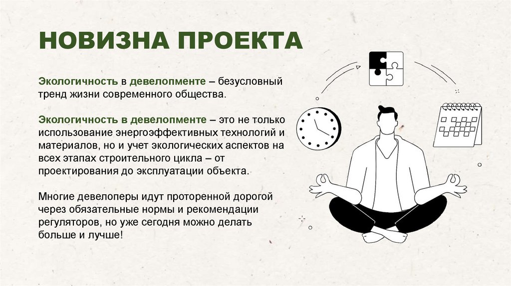 НОВИЗНА ПРОЕКТАЭкологичность в девелопменте – безусловный