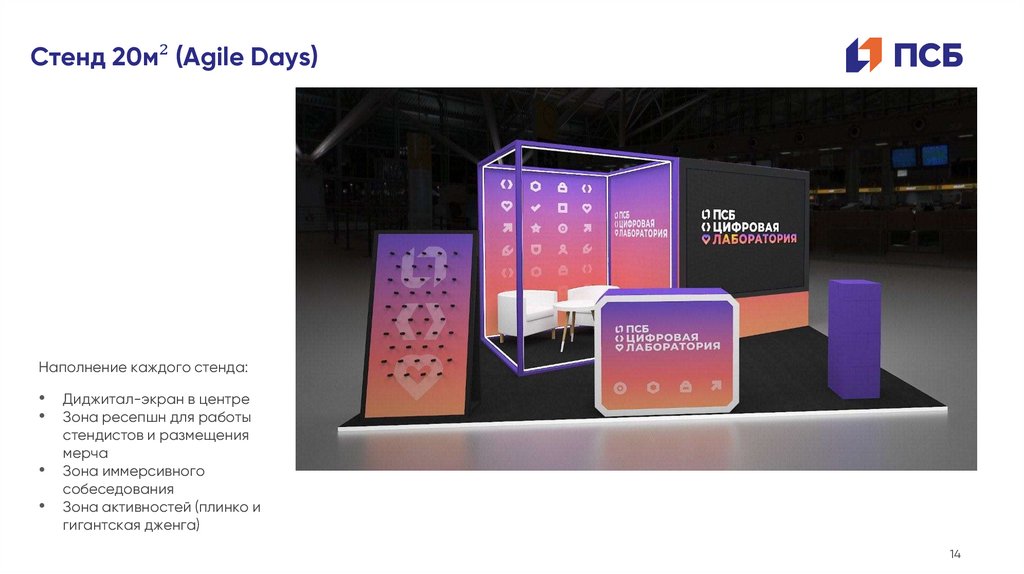 Стенд 20м² (Agile Days)Наполнение каждого стенда: