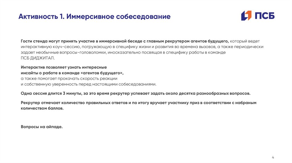 ПСБ и рассказывают про активности на стенде.