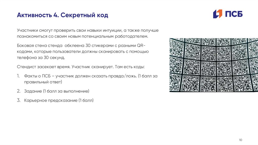 Активность 4. Секретный кодУчастники смогут проверить свои навыки интуиции, а также получше
