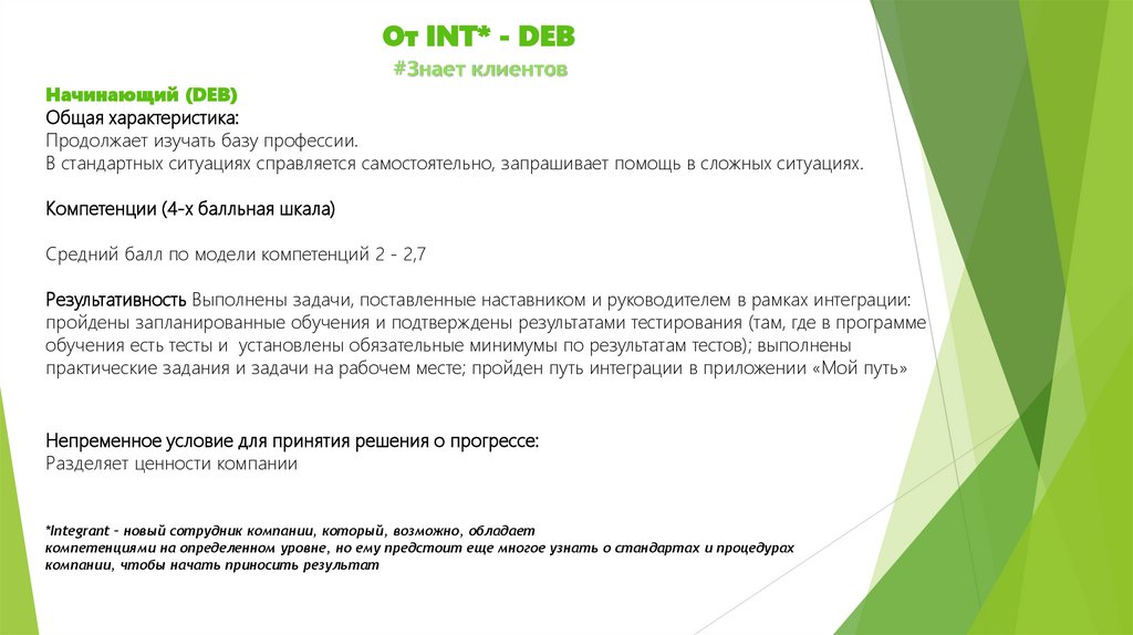 компетенциями на определенном уровне, но ему предстоит еще многое узнать о стандартах и процедурах