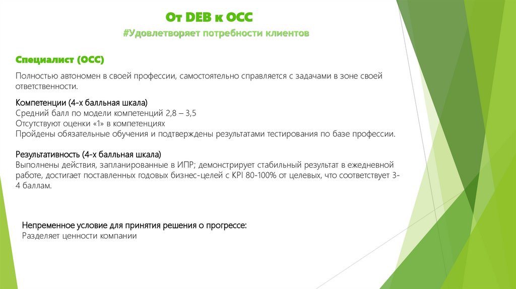 От DEB к ОСС#Удовлетворяет потребности клиентов