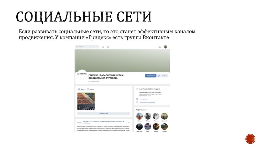 Если развивать социальные сети, то это станет эффективным каналомпродвижения. У компании «Гридекс» есть группа Вконтакте