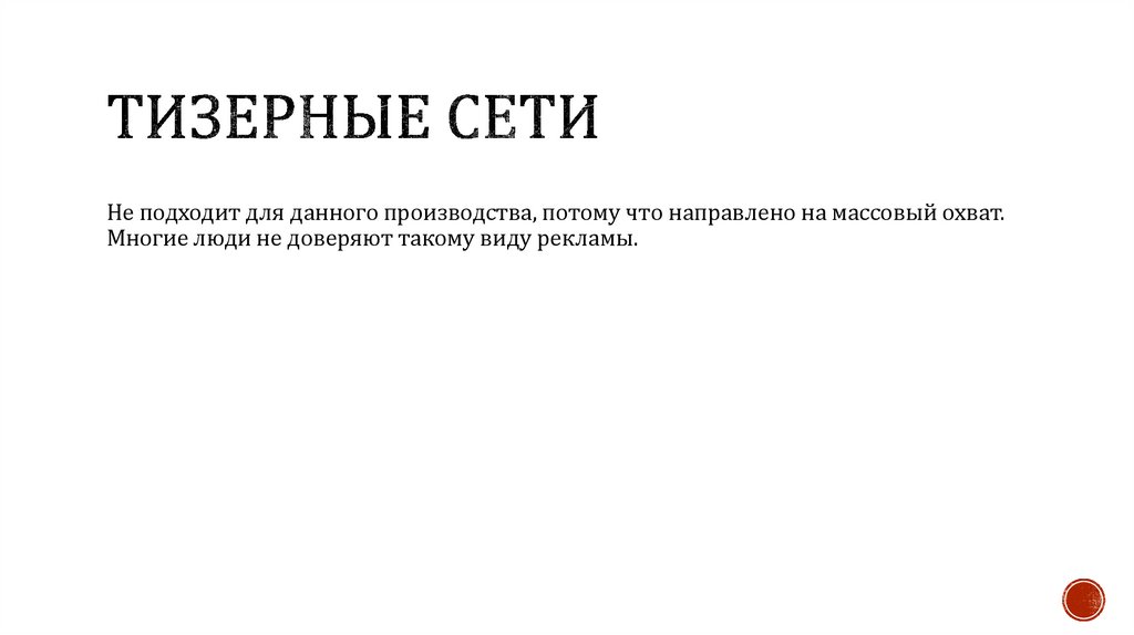 Не подходит для данного производства, потому что направлено на массовый охват.Многие люди не доверяют такому виду рекламы.