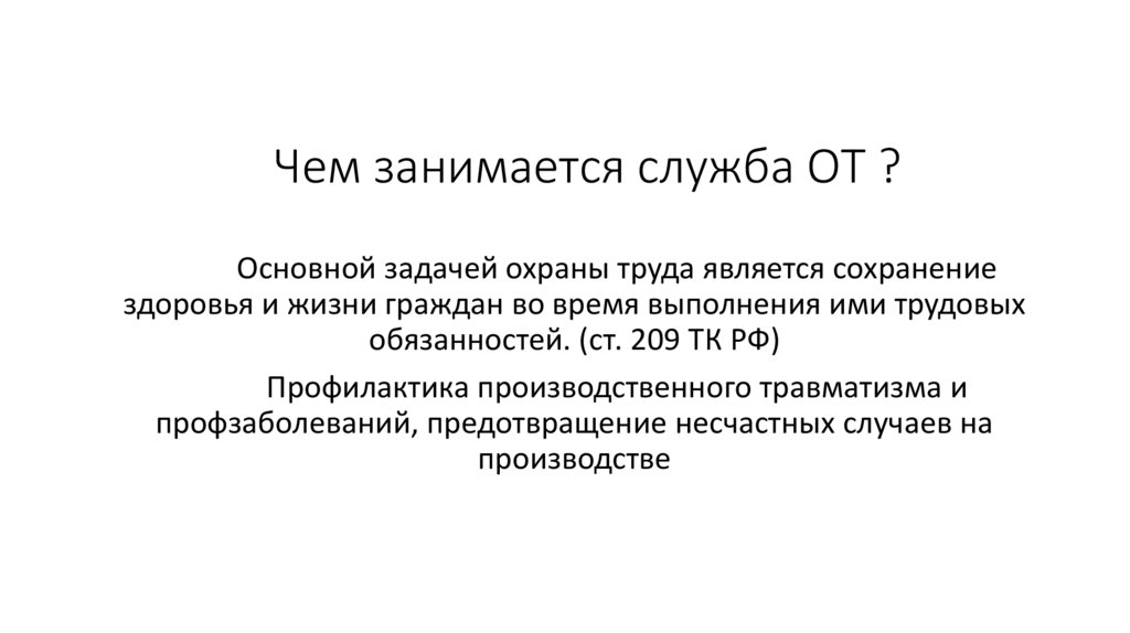 Чем занимается служба ОТ ?Основной задачей охраны труда является сохранение
