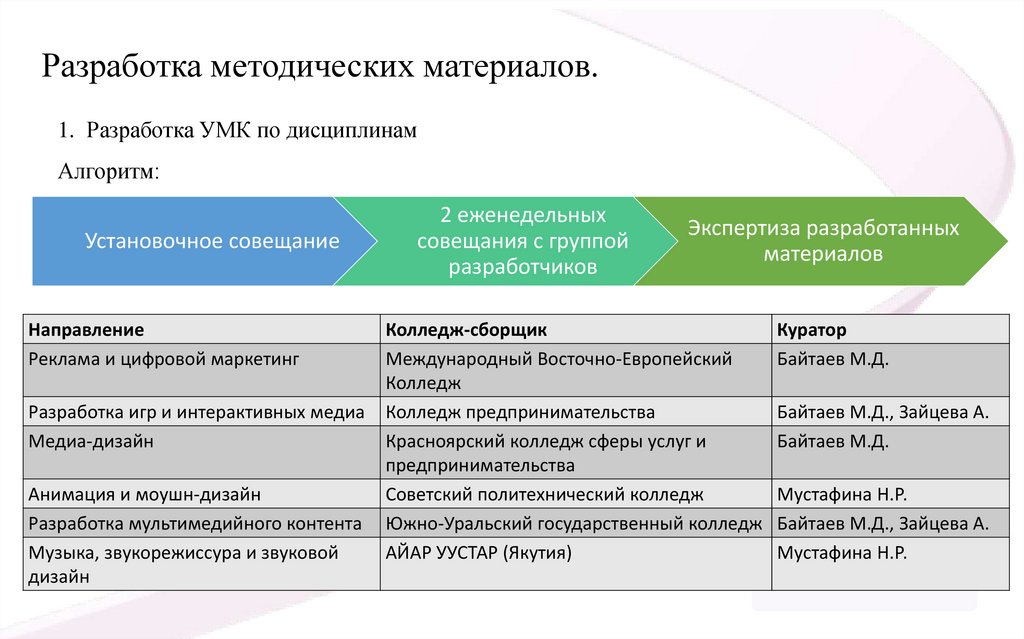 колледжей креативных 2. Доработка УМК и РПД