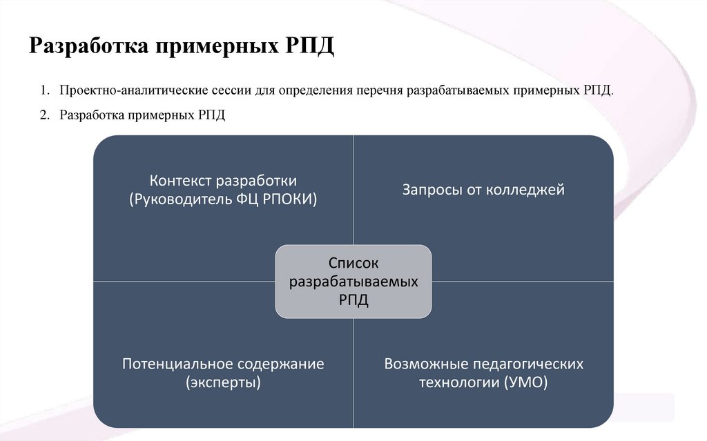 Разработка примерных РПД1. Проектно-аналитические сессии для определения перечня разрабатываемых примерных РПД.