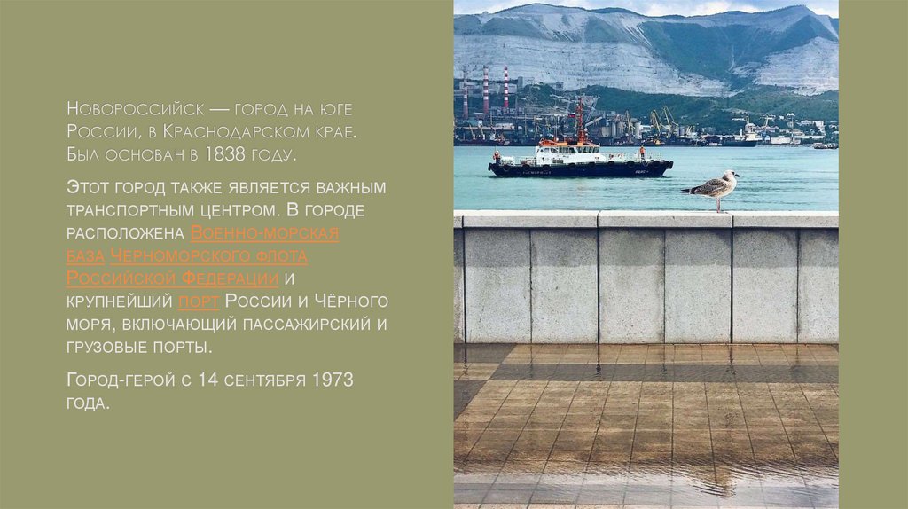 НОВОРОССИЙСК — ГОРОД НА ЮГЕРОССИИ, В КРАСНОДАРСКОМ КРАЕ.