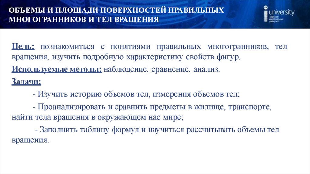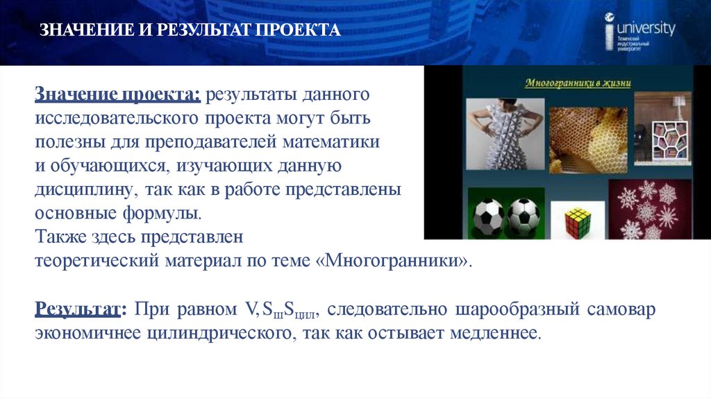 ИНДИВИДУАЛЬНЫЙ УЧЕБНЫЙ ПРОЕКТ НА ТЕМУ«Объемы и площади поверхностей правильных многогранников и